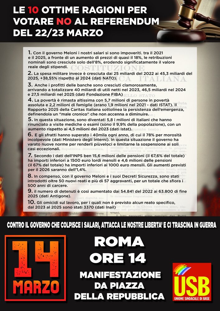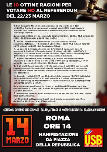 Ma la partita è tutt’altro che persa. Come ci siamo mobilitati in tanti in autunno, possiamo e dobbiamo tornare a farlo ora, scendendo in piazza a Roma in una grande manifestazione per il No Sociale il 14 marzo e sommergendo il governo sotto una valanga di No il 22 e il 23 marzo al referendum.