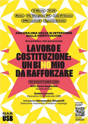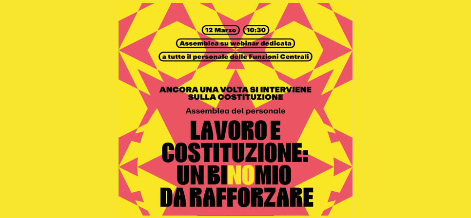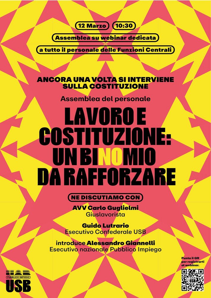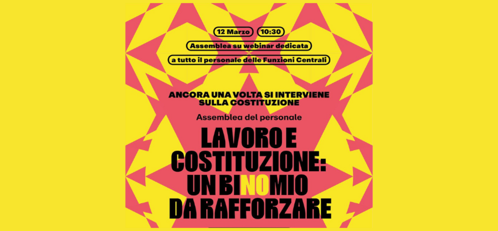 In vista della manifestazione del 14 marzo per il NO sociale al Referendum sulla giustizia, l'USB Pi ha indetto un'assemblea per le Funzioni centrali che si svolgerà il 12 marzo dalle ore 10.30 alle ore 12.30.