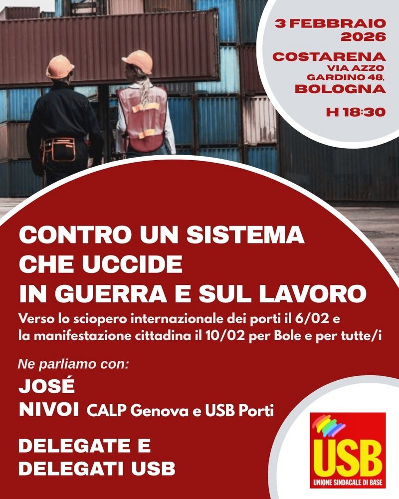 Per questo saremo in piazza il 6 febbraio per lo sciopero internazionale dei porti ed il 10 febbraio a Bologna in una grande manifestazione contro le morti sul lavoro e per ricordare, con dolore e rabbia, il nostro compagno Andrea Bolelli "Bole" morto in un incidente stradale mentre lavorava.