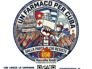 USB ha lanciato una raccolta fondi in sostegno al popolo di Cuba, stritolato dal bloqueo mentre è sotto la continua e crescente minaccia di intervento americano. È possibile aderire alla campagna "Un farmaco per Cuba" sul crowdfounding a questo link: https://www.produzionidalbasso.com/project/un-farmaco-per-cuba/ e scansionando il QR code. Se non fosse possibile inviare il pagamento, visto che alcune piattaforme come PayPal bloccano i versamenti in solidarietà con Cuba, è possibile contribuire versando al cc: IT22E0200805253000106162030 - intestato a: CONFEDERAZIONE UNIONE SINDACALE DI BASE