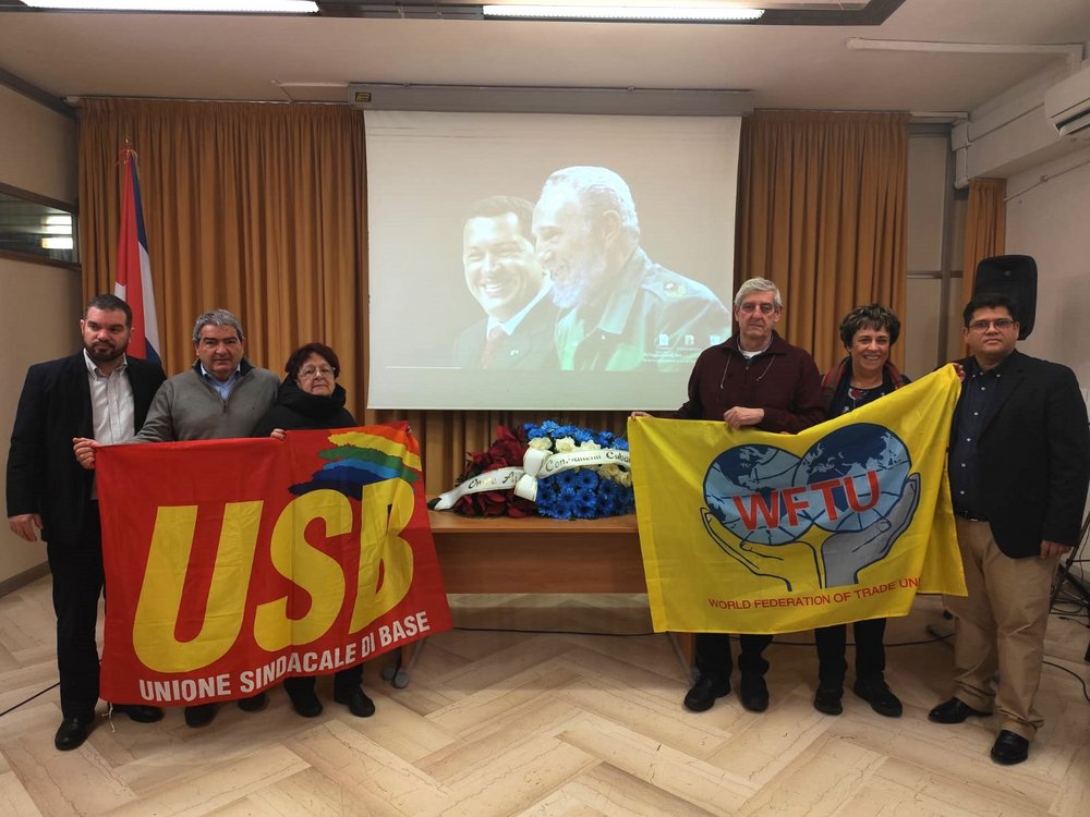 Una delegazione dell'USB insieme al coordinatore europeo della Federazione Sindacale Mondiale ha reso omaggio, presso l'Ambasciata di Cuba in Italia, ai 32 combattenti rivoluzionari cubani uccisi a Caracas durante l'eroica difesa del Presidente Venezuelano Nicolas Maduro e della prima dama Cilia Flores. La solidarietà internazionalista ed anti imperialista è fattore costituente della nostra organizzazione sindacale. Onore ai combattenti rivoluzionari cubani, giù le mani da Maduro da Cilia Flores e dalla rivoluzione bolivariana.