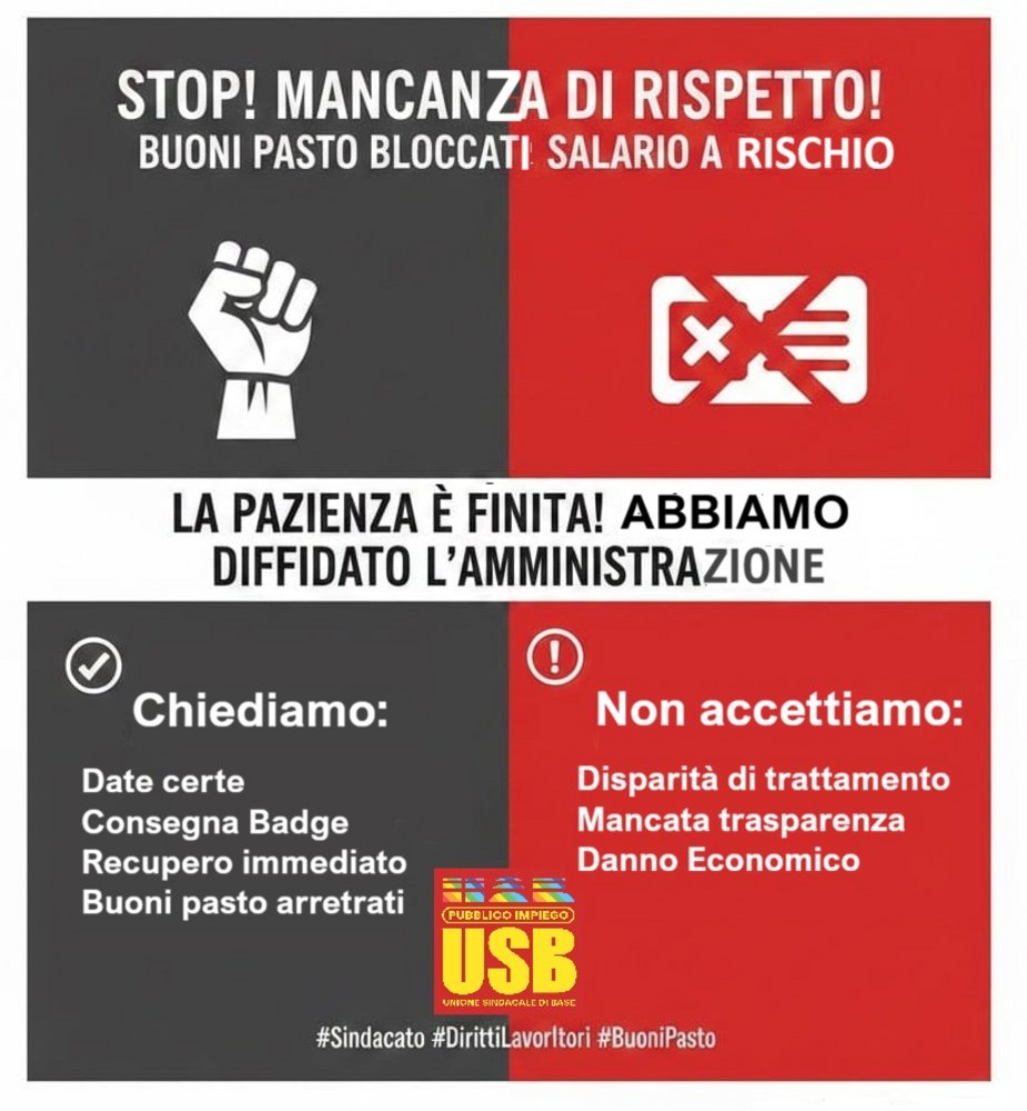 USB ha diffidato l'Amministrazione a fornire immediatamente un calendario certo delle consegne, a chiarire gli intoppi tecnici e a trovare soluzioni d'urgenza per il recupero retroattivo di tutti i ticket non fruiti.