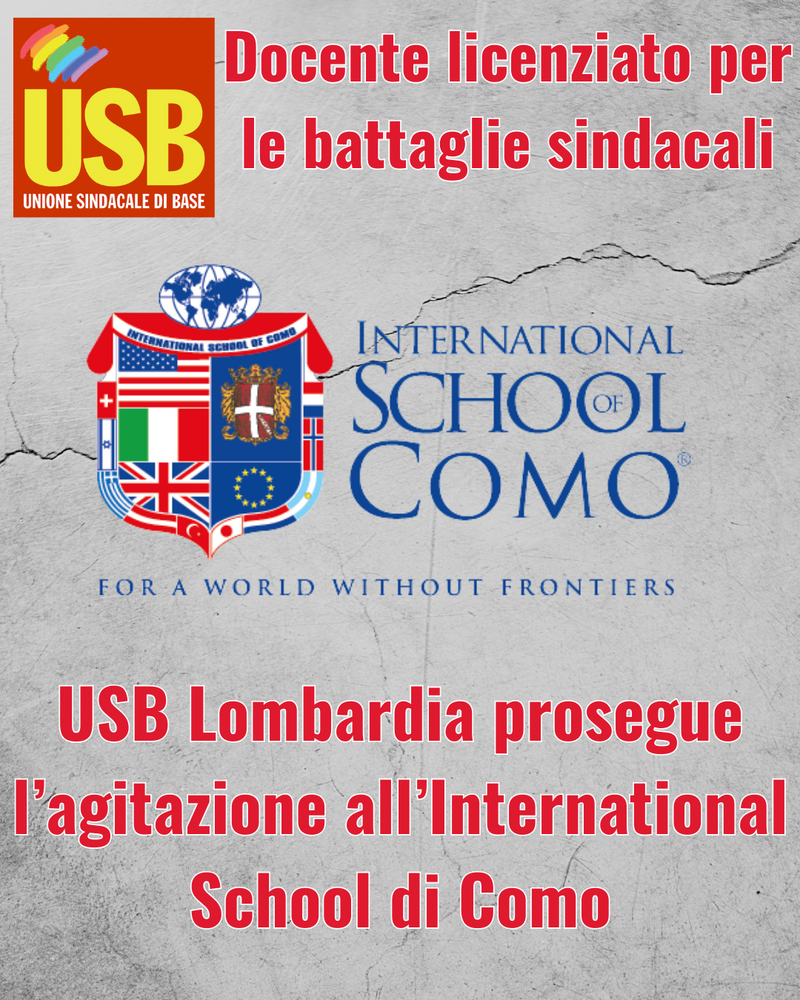 USB Lombardia ha incontrato ieri, 19 novembre, la direzione dell’International School of Como, scuola appartenente alla multinazionale Inspired, dopo mesi di vani tentativi e solamente a fronte dell’apertura delle procedure di sciopero presso la prefettura di Como. L’intenzione di affrontare finalmente la redazione condivisa di un contratto di secondo livello che garantisse equi e corretti trattamenti economici, la corretta gestione dei tempi di lavoro e di vita e delle relazioni sindacali efficaci è stata gelata dalla comunicazione del licenziamento di un docente nonché rappresentante sindacale USB dell’istituto, il prof. Carlo Fino.