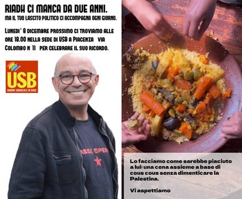 Oggi, a due anni dalla sua scomparsa, presso la sede USB di Piacenza, alle ore 18.00 ci ritroveremo per ricordare Riadh Zaghdane.