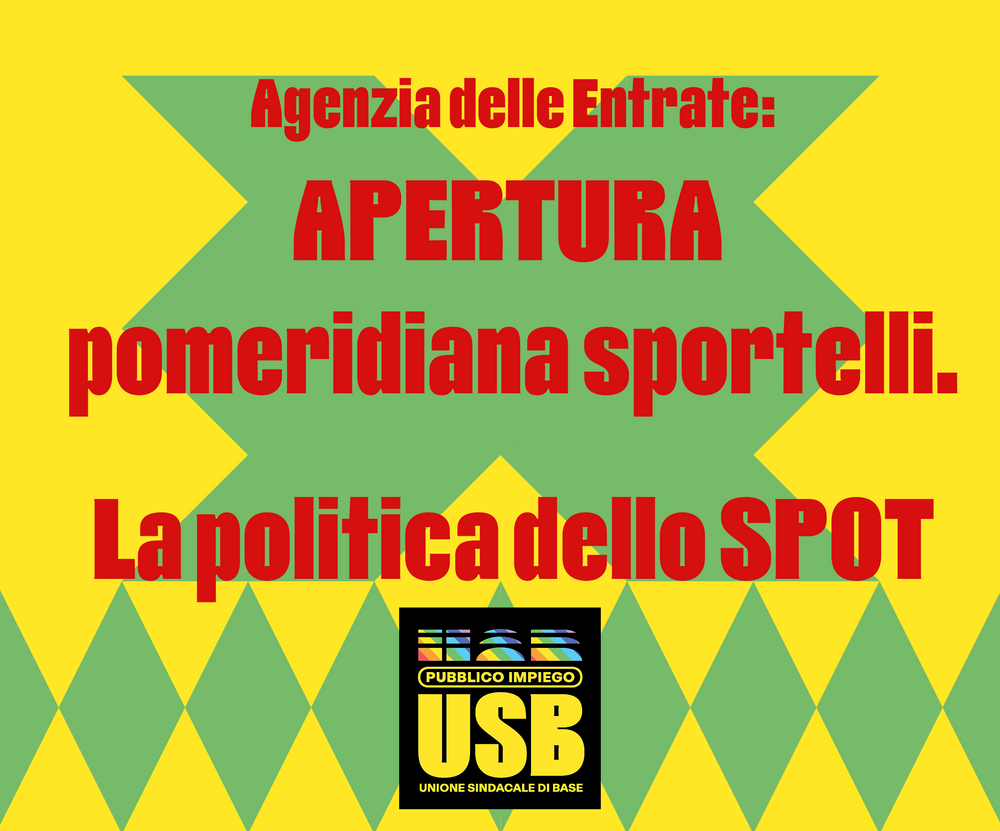 Pubblichiamo la nota trasmessa dall’Esecutivo Nazionale di USB-Agenzie Fiscali ai vertici dell’Agenzia delle Entrate, sul tema dell’apertura pomeridiana dei front-office.
