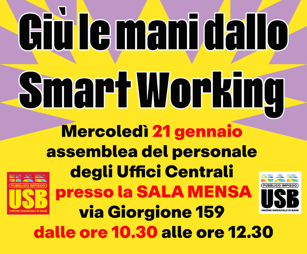 Mercoledì 21 gennaio assemblea del personale degli Uffici centrali presso la sala mensa di via Giorgione 159 dalle ore 10.30 alle ore 12.30!