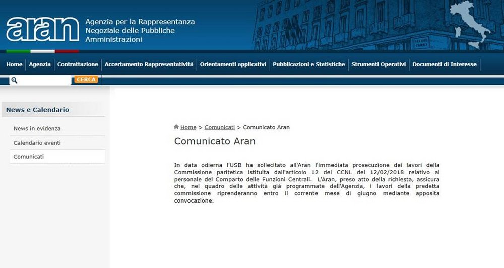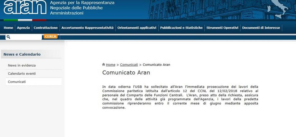 Funzioni Centrali, USB all'Aran per chiedere conto degli impegni presi e non mantenuti