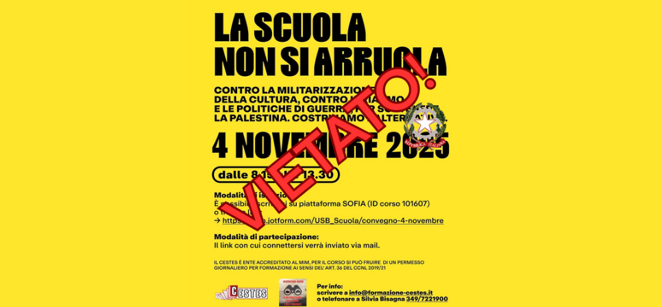Per discutere del riarmo, della logica della guerra come soluzione dei conflitti internazionali, dell’imperialismo che alla guerra inevitabilmente porta, era stato organizzato dal CESTES (Centro Studi Trasformazioni Economico Sociali) il convegno dal titolo “4 Novembre. La scuola non si arruola”, con la partecipazione dell’Osservatorio sulla militarizzazione delle scuole e delle università e che aveva raccolto più di mille adesioni di docenti di tutta Italia.
