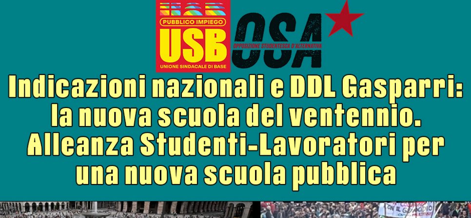 Quello di Gasparri non è solo un DDL che silenzia le proteste e la libertà di espressione, ma impone un revisionismo storico che deve permeare profondamente il corpo sociale del Paese, come già chiaramente evidenziato dalle Indicazioni Nazionali in cui con le tre parole d’ordine Bibbia, Latino e alfabetizzazione digitale, si vuole in realtà stabilire un focus chiaro su una storia occidentale, ormai in crisi dentro il mondo multipolare, declinata attraverso cristianità, romanità, individualismo. I fantomatici valori dell’Occidente, tanto cari a Valditara e Galli della Loggia, li abbiamo visti a Gaza, con la complicità inequivocabile delle cancellerie occidentali con il genocidio perpetrato da Israele. Le tantissime occupazioni di questi giorni, sostenute dall’Osa e appoggiate da USB, sono un grido degli studenti e delle studentesse contro questa contraddizione stridente, fra l’immagine che il nostro pezzo di mondo si vuole dare e le barbarie che produce.