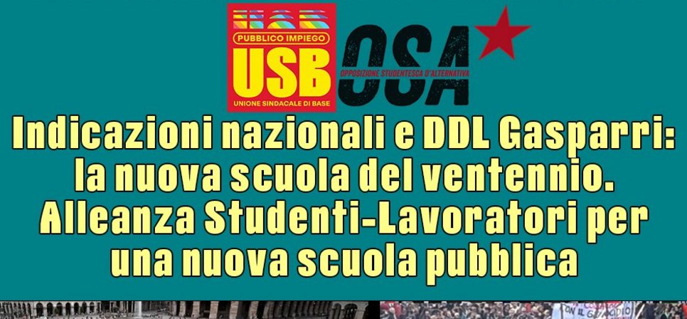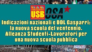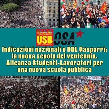 Quello di Gasparri non è solo un DDL che silenzia le proteste e la libertà di espressione, ma impone un revisionismo storico che deve permeare profondamente il corpo sociale del Paese, come già chiaramente evidenziato dalle Indicazioni Nazionali in cui con le tre parole d’ordine Bibbia, Latino e alfabetizzazione digitale, si vuole in realtà stabilire un focus chiaro su una storia occidentale, ormai in crisi dentro il mondo multipolare, declinata attraverso cristianità, romanità, individualismo. I fantomatici valori dell’Occidente, tanto cari a Valditara e Galli della Loggia, li abbiamo visti a Gaza, con la complicità inequivocabile delle cancellerie occidentali con il genocidio perpetrato da Israele. Le tantissime occupazioni di questi giorni, sostenute dall’Osa e appoggiate da USB, sono un grido degli studenti e delle studentesse contro questa contraddizione stridente, fra l’immagine che il nostro pezzo di mondo si vuole dare e le barbarie che produce.