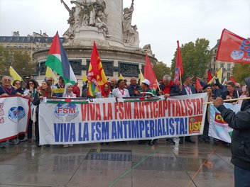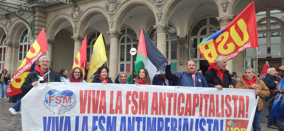 Oggi milioni di lavoratori lottano contro la guerra, per il popolo palestinese sotto le bandiere della FSM.