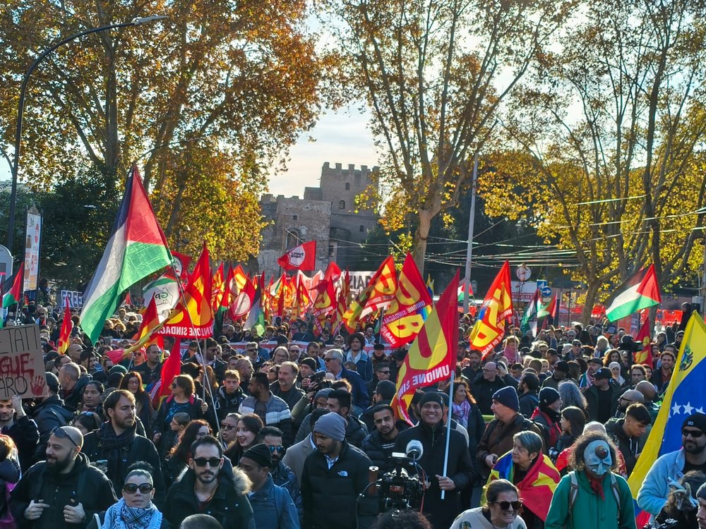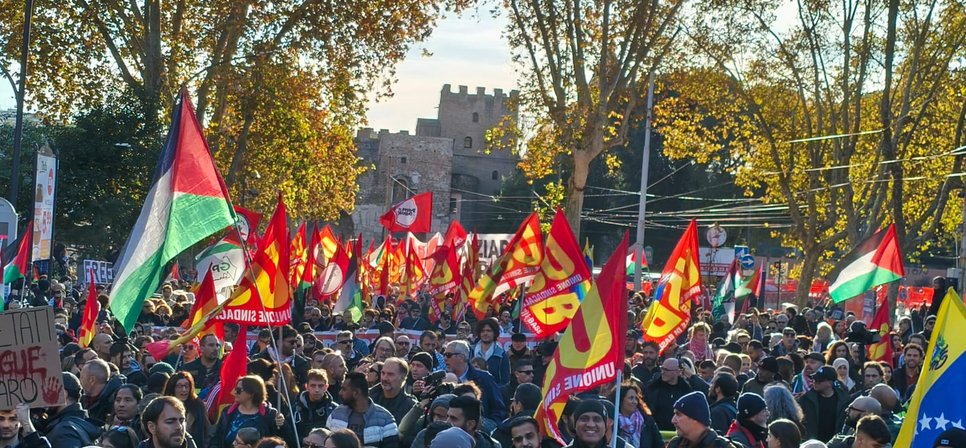 Lo sciopero arrivava sulla scia delle grandi mobilitazioni contro il genocidio palestinese di settembre e ottobre, ma questa volta si poneva l’attenzione alla finanziaria di guerra approvata dal governo Meloni e alla situazione sociale del nostro Paese, che può essere considerata come la seconda faccia della stessa medaglia dell’economia del riarmo.