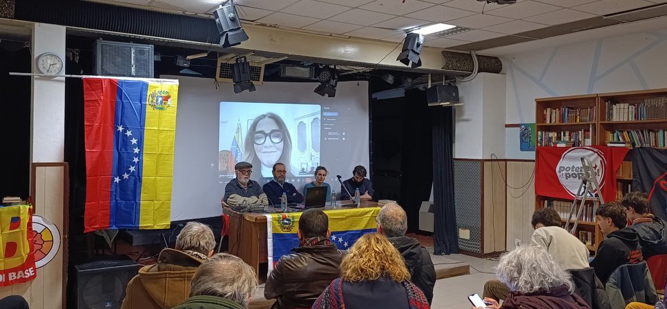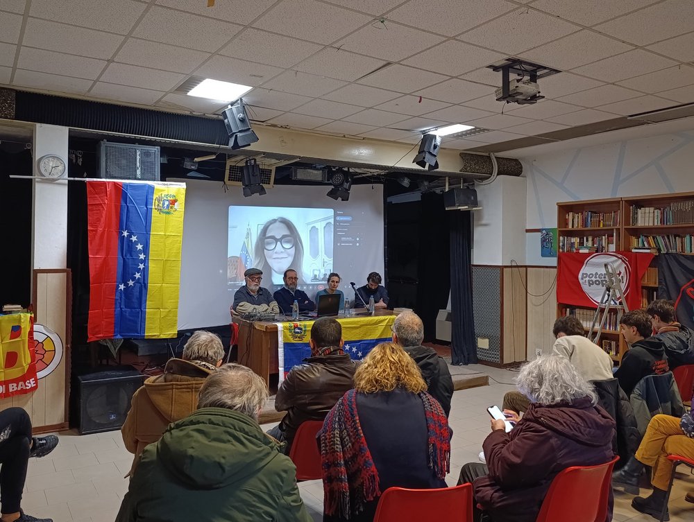 Nella serata del 16 gennaio si è tenuto l’evento "Giù le mani dal Venezuela”, ospitato dalla Cooperativa infrangibile 1946, un evento importante poiché, come tutti gli eventi di questa natura, punta a dare un’informazione libera ai cittadini riguardo quella che è la storia e la situazione attuale della Repubblica Bolivariana del Venezuela. A questo scopo il collegamento con l’ambasciatrice Venezuelana in Italia, Maria Elena Uzzo, che ha iniziato questa importante serata, ha confermato, per voce della stessa ambasciatrice, l’importanza di questi incontri, in un occidente che si fa poliziotto del mondo e quindi, in varie maniere, punta a delegittimare il governo Bolivariano di Maduro. L' ambasciatrice ha ringraziato i presenti, evidenziando quanto sia importante che anche in occidente nasca una consapevolezza riguardo l’importanza sociale ed internazionale della rivoluzione bolivariana del Venezuela, di quanto questo esprime vicinanza e fratellanza fra due popoli distanti geograficamente ma vicini per quanto riguarda l’amore per la libertà e la giustizia fra i popoli del mondo. In un momento così difficile per il popolo rivoluzionario del Venezuela, l’importanza di fare sentire la solidarietà e la vicinanza anche in occidente, da forza a chi resiste in America latina, a chi oltre che a difendere il proprio paese, è in prima linea per difendere un subcontinente da sempre aggredito dall' imperialismo USA per mantenere i propri interessi a discapito della vita e del benessere dei popoli. Fra gli ospiti della serata il prof. Luciano Vasapollo, che ha ripercorso la sua storia personale in relazione alla vita politica sud americana, spiegandoci così, grazie ai rapporti che ha intrattenuto con le più grandi figure politiche del sub continente come Fidel Castro e Hugo Chavez, cosa è stato e cosa è tutt'ora la rivoluzione bolivariana del Venezuela. La testimonianza del professore Vasapollo è stata particolarmente preziosa perché ha chiarito aspetti del processo rivoluzionario venezuelano poco noti ai più ,come ad esempio i passaggi fondamentali della nascita del pensiero rivoluzionario di Hugo Chavez , la storia delle personalità di spicco della repubblica Bolivariana , fra le quali Cilia Flores , non una semplice "First lady" ma la prima combattente della Repubblica Bolivariana del Venezuela , impegnata da sempre in prima linea nelle battaglie rivoluzionarie per la giustizia sociale , e lo stesso presidente Nicolas Maduro , che a dispetto di ciò che viene propagandato dalla stampa padronale non esce fuori dal nulla , ma ha alle spalle una storia di combattente rivoluzionario vicino ai lavoratori ed impegnato in prima fila nella difesa degli interessi dei proletari e del popolo venezuelano. Fra le varie menzogne occidentali che il prof. Vasapollo ha avuto modo di smontare c'è stata anche la questione relativa ad un presunto tradimento della vice presidente Delcy Rodriguez rispetto il corso della repubblica Bolivariana e un suo contrasto insanabile con Diodato Cabello , una narrazione tossica e menzognera che come tante altre è partita dagli imperialisti di Washington e punta a mettere confusione nel popolo italiano e nella sinistra , inventandosi divisioni che non esistono con il solo obbiettivo di delegittimare il corso della rivoluzione bolivariana. Una rivoluzione che ha dato da sempre fastidio agli imperialisti statunitensi e ai fascisti della cosiddetta opposizione al governo bolivariano perché , continuando con la preziosa spiegazione di chi come il prof Vasapollo si è impegnato in prima persona in questo processo , ha messo a disposizione degli interessi della parte più povera del popolo venezuelano più dell'80% degli introiti derivati dalle operazioni estrattive in Venezuela (che ricordiamo essere in possesso della riserva di greggio potenziale più grande al mondo , relativa alle sabbie bituminose dell’Orinoco che rappresentano circa il 18% delle riserve mondiali) , riuscendo in questo modo a finanziare vari progetti infrastrutturali e legati ai servizi essenziali della popolazione. Un’economia, quella del Venezuela sovrano ed indipendente, che ha saputo sganciarsi da una strategia meramente estrattiva, arrivando ad avere una capacità produttiva domestica in grado di produrre beni essenziali e primari per la popolazione, differenziando quindi ulteriormente le proprie risorse economiche. Questo combinato disposto di scelte in materia di politica economica ed internazionale , operate da Caracas fra il 1998 e i giorni nostri , si lega ad un percorso di politica interna , ben chiarito dal prof. Vasapollo , che ha spiegato come i leader della rivoluzione bolivariana , Hugo Chavez in primis , abbiano abbracciato la competizione elettorale alla fine degli anni novanta , con l'intento peculiare di sviluppare nel contempo una coscienza ed una pratica sociale che non solo ponesse gli interessi popolari al di sopra di tutto ma che puntasse anche ad una partecipazione attiva ed effettiva del popolo dei Barrios , di quelli che fino a che governava la Borghesia compradora bianca di Caracas erano semplicemente ignorati , considerati come bestiame più che come esseri umani. Queste testimonianze, hanno quindi ulteriormente chiarito che la legittimità del governo Maduro non riposa solamente sul corretto svolgimento formale delle elezioni, cosa comunque acclarata da numerosi osservatori internazionali negli anni, ma anche che la democrazia venezuelana è ben più giusta, effettiva e partecipata di quella occidentale che si erge a modello assoluto per tutti solo per poter giustificare atti criminali che hanno a monte interessi ben poco nobili. Non sorprende quindi che ad attaccare un processo autenticamente popolare come quello bolivariano ritroviamo fascisti e suprematisti di tutte le parti del mondo, da Maria Corina Machado ,(novello Nobel della pace che fino all'anno scorso non aveva problemi a fare carovane per Caracas in compagnia di loschi figuri dal grillet