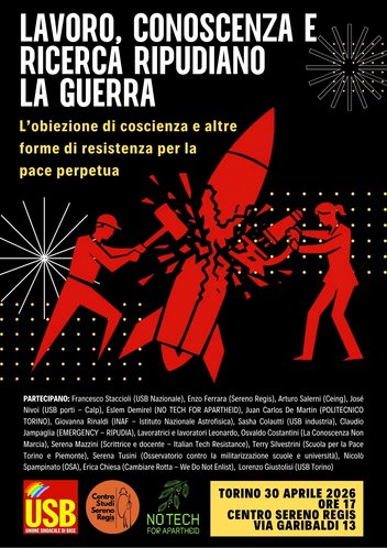 USB - insieme al Centro Studi Sereno Regis e a No Tech for Apartheid - organizza un importante momento di confronto e messa in relazione di alcune delle principali esperienze di lotta politica, sindacale, culturale che in questi anni, e ancor di più dalle grandi mobilitazioni dell’autunno e del “blocchiamo tutto”, hanno attraversato e stanno attraversando il panorama nazionale e internazionale.