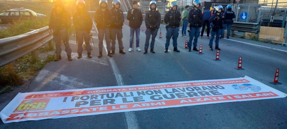 Decine di attivisti contro la guerra tra cui i membri della federazione USB di Livorno hanno bloccato il ponte mobile di via Mogadiscio per impedire il transito, ma la celere è intervenuta per garantire il passaggio di armi. Un atteggiamento che denunciamo con forza: evidentemente i tentativi del governo di smarcarsi dagli interessi bellici americani sono solo di facciata, dato che per garantire il traffico di armi da una base USA si fa ricorso alla polizia.