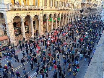 Manifestazioni in più di 50 città, con centinaia di migliaia di persone che hanno protestato contro la finanziaria di guerra del governo Meloni: questo l’esito più evidente di uno sciopero generale, il terzo in soli due mesi, che ha collegato il sostegno al popolo palestinese con la rivendicazione di una diversa politica economica. Le manifestazioni più grandi si sono registrate a Milano, a Bologna e a Genova, dove in testa al corteo, assieme ai portuali, hanno sfilato Greta Thunberg e Francesca Albanese. A Roma, in piazza Montecitorio, si è organizzata la bocciatura di massa della finanziaria di guerra: l’USB ha proposto una contro finanziaria aderente al dettato costituzionale.