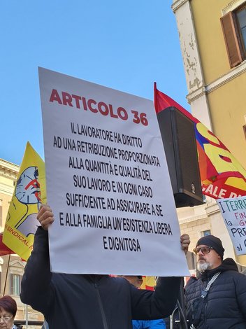 Lavoratori dei settori pubblici e privati hanno sfilato in tutta Italia chiedendo salari che partano almeno dai duemila euro, pensioni a partire dai 62 anni e il rilancio degli investimenti pubblici per fermare la deindustrializzazione del paese.