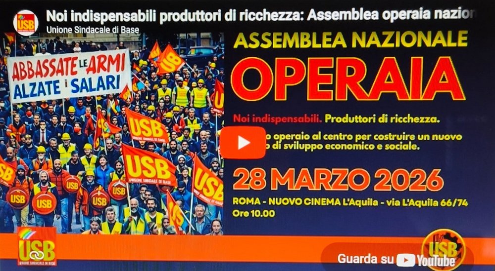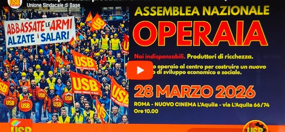 ASSEMBLEA NAZIONALE OPERAIA – delegati e delegate dell’USB - ROMA cinema Aquila – 28 marzo 2026
