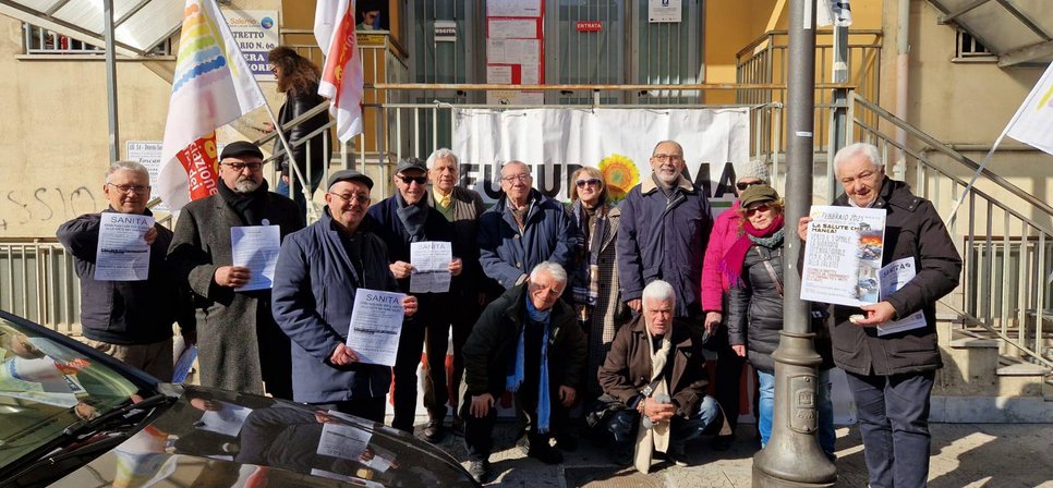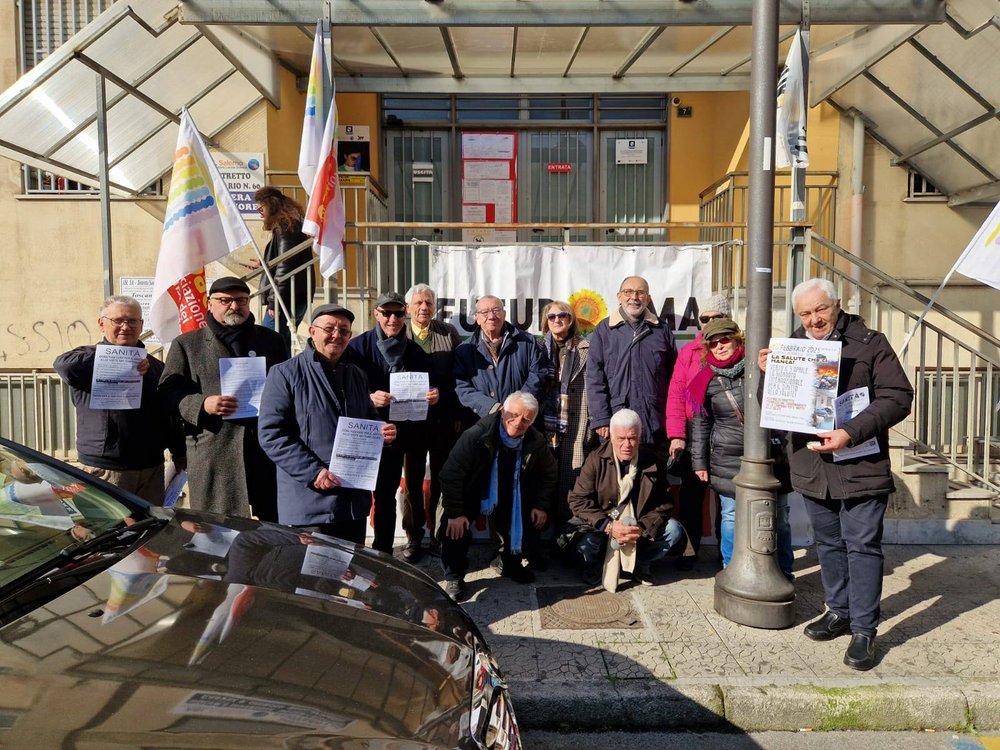 A.Ba.Co. - Associazione di Base CONSUMATORI - insieme a FUTURAMA, Associazione che ha per simbolo un girasole, hanno organizzato la protesta in continuità con la vertenza che vede come controparte sia il Governo Regionale che quello Nazionale. Le rivendicazioni hanno come obiettivo il miglioramento dei servizi della Sanità pubblica, in particolare la soluzione ai problemi delle "liste di attesa" per esami e visite. Il paradosso che, però, la USB PENSIONATI mette in evidenza è che pagando, sia gli esami che le visite, hanno tempi limitatissimi di attesa, mentre se rientranti nel SSN essi hanno tempi biblici. La salute solo a chi economicamente se la può permettere è uno scandalo che deve finire.