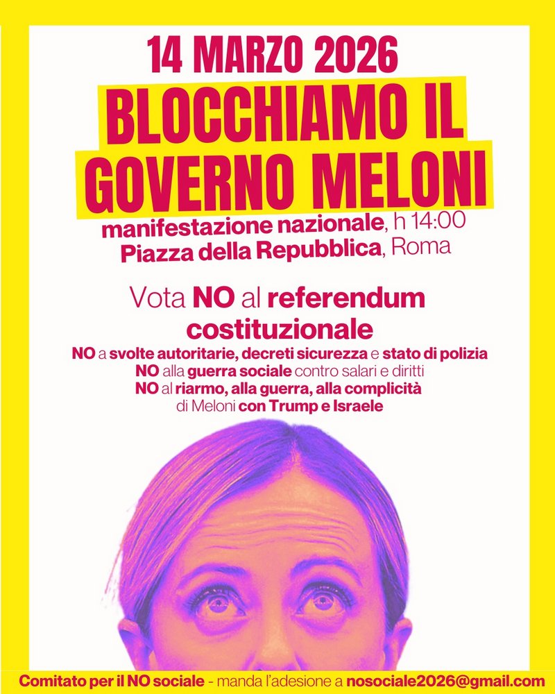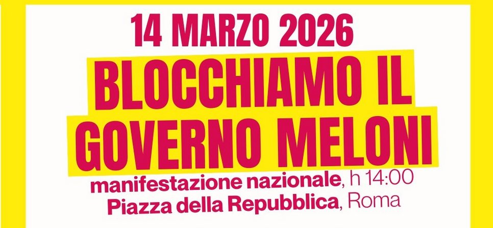 Costruiamo una grande manifestazione popolare e nazionale a Roma per sabato 14 marzo, contro il governo delle disuguaglianze sociali, della guerra e dell’autoritarismo. Per una battaglia di libertà ed emancipazione collettiva.