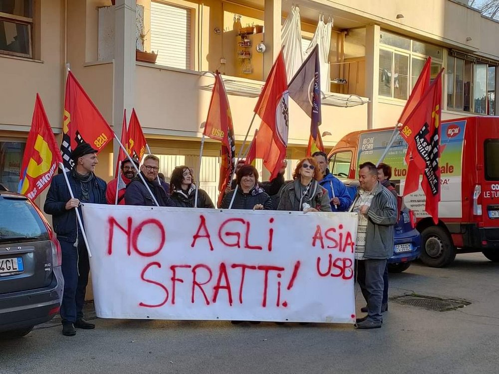 Invece di denunciare il fatto che siamo ultimi in Europa per numero di alloggi popolari, di evidenziare come solo nel nostro paese i salari siano diminuiti drasticamente negli ultimi 10 anni, di parlare della mancanza di diritti e della povertà crescente, questi servi del padronato si accaniscono contro persone che hanno perso il lavoro, che non ha alcun sostegno economico e, quindi, sempre di più perdono anche la possibilità di avere un tetto sulla testa.