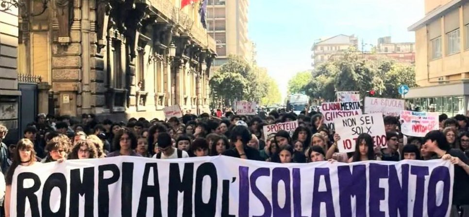 Claudia, una studentessa che frequentava il quarto ginnasio presso il Liceo Cutelli, si è tolta la vita buttandosi dal 7° piano della sua abitazione perché - come denunciano le studentesse e gli studenti scesi oggi in piazza - "vittima di bullismo e di mancanza di ascolto...e non è morta solo per un suo dolore privato, ma per un sistema che ogni giorno le ha tolto l’aria. Il sistema scolastico ritiene che i nostri problemi siano fatti individuali, personali, da affrontare singolarmente con uno psicologo privato, a pagamento. Ha fatto propria la logica che ci vuole tutti vincenti, dritti, anche se tu ti stai spezzando dentro. I problemi e le debolezze sono considerati come una vergona che ti devi tenere dentro".