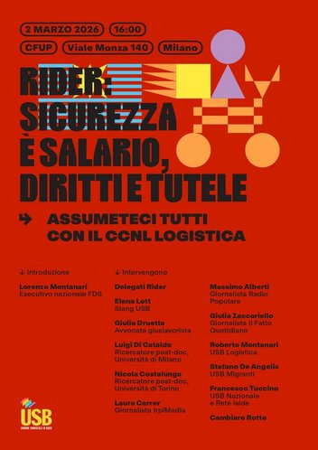 USB ha organizzato un dibattito “Sicurezza è salario, diritti e tutele”, lunedì 2 marzo, a partire dalle ore 16:00, presso il Circolo Familiare di Unità Proletaria in viale Monza 140 a Milano. Locandina con programma dei lavori allegata.