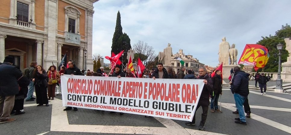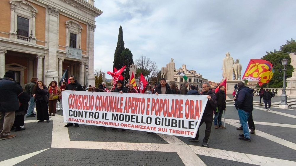 In piazza erano presenti le realtà, organizzazioni e comitati che ogni giorno lottano contro la speculazione e cementificazione del "Modello Giubileo" bipartisan di Gualtieri-Meloni, occupanti e inquilini per il diritto alla casa, lavoratori delle partecipate, abitanti per il diritto ai servizi e agli spazi pubblici, per la tutela dell'ambiente, per una cittá pubblica.