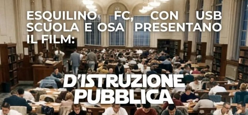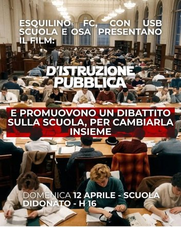 Le controriforme di matrice ordoliberista, che mirano all’aziendalizzazione della scuola e al contestuale annichilimento della sua funzione critica, sono al centro della pellicola. Per questo l’Esquilino FC, con Usb Scuola e Osa hanno deciso di riproporla e di invitare a discuterne le tesi, anche a partire da punti di vista differenti, nel tentativo di proseguire un confronto che - anche se non giungerà a una sintesi definitiva, e anzi è pronto a rilanciare e darsi prossimi momenti - consenta un passo avanti nell’azione di contrasto a tale pericolosa deriva.