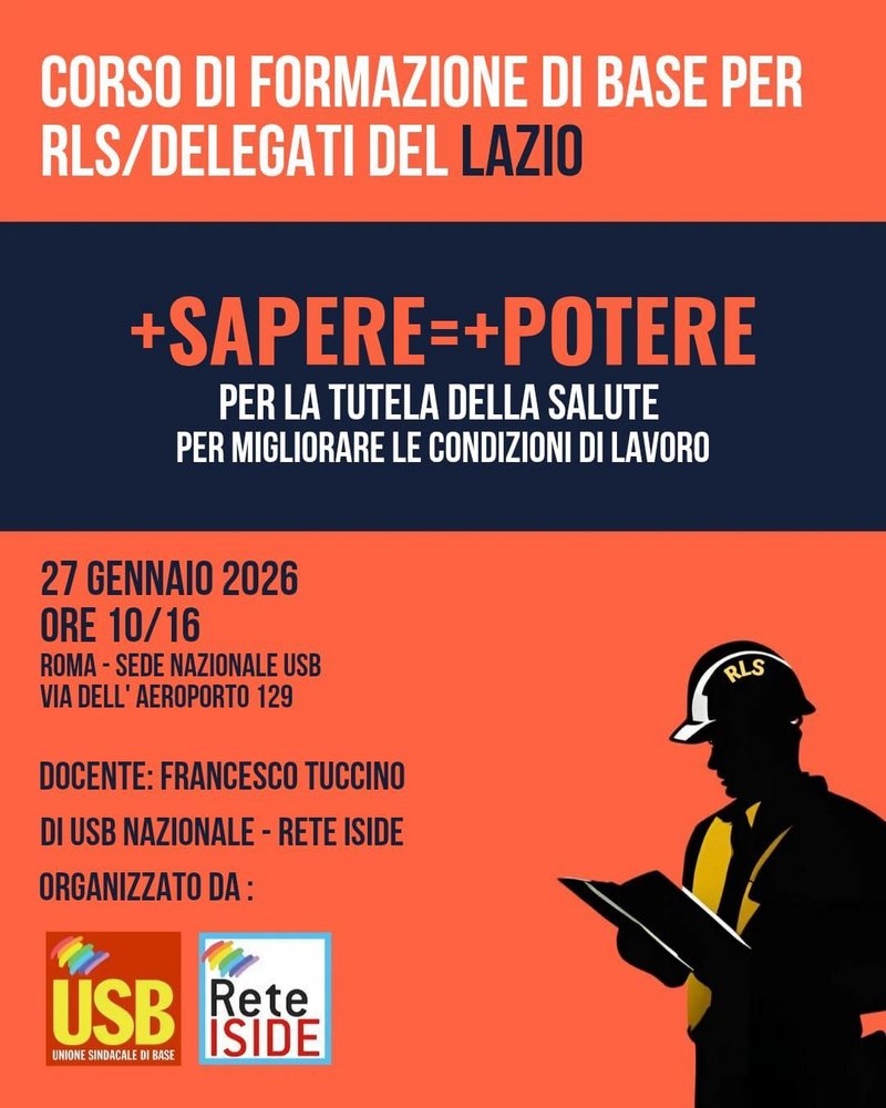 Martedì 27 gennaio 2026, corso di formazione per Rls e delegati USB del Lazio.