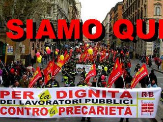 Ieri mattina l'hanno rinverdita i dipendenti pubblici chiamati allo sciopero dalle Rappresentanze di Base (Rdb-Cub), con un corteo - partito da piazza della Repubblica - che ha raggiunto il ministero della funzione pubblica, in Corso Vittorio. Un fiume di gente e di bandiere, che gli organizzatori hanno quantificato in 40.000 e la questura, stavolta, non sembra aver contraddetto. In testa i vigili del fuoco - tanti, in divisa, «ben piazzati» - comparto fondatore di questo sindacato di base, sicuramente la faccia del pubblico impiego che nessuno si sognerebbe di criticare. L'arrivo dei treni ritarda l'avvio della marcia, con i toscani in pullman bloccati a Saxa Rubra (alle porte della città). Si srotolano gli striscioni, contro la precarietà, la legge 30, il «precariato di stato». Illuminante quello delle educatrici della Farmacap (60, tutte precarie): «La stabilità del paese è fondata sul lavoro, ma se il lavoro non è stabile?».