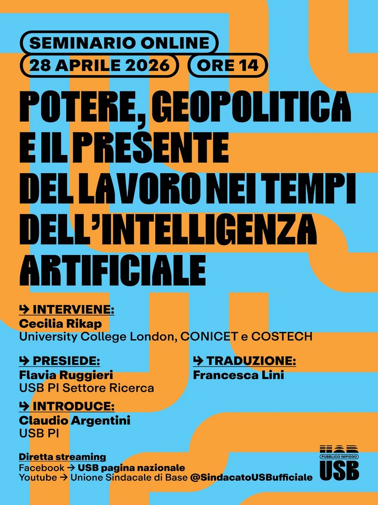 L’incontro si propone di aprire una riflessione su queste tematiche e iniziare a definire alternative possibili: la governance democratica delle infrastrutture digitali, la proprietà pubblica, il coinvolgimento dei lavoratori e lavoratrici nelle scelte tecnologiche e nuove forme di azione collettiva nelle economie guidate dall’IA. Il seminario è aperto a studenti, ricercatrici e ricercatori, lavoratrici e lavoratori del settore pubblico e a chiunque sia interessato a comprendere come l’IA stia ridefinendo già oggi il rapporto tra lavoro e capitale e come sia necessario invertire la rotta per renderla, categoricamente, strumento al servizio dei bisogni pubblici sociali, anziché dei monopoli delle grandi corporation tecnologiche.