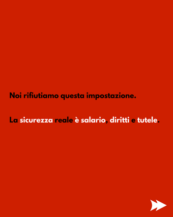 Noi rifiutiamo questa impostazione. La sicurezza reale è salario, diritti e tutele.