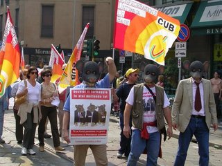 Sono presenti, fra gli altri, i coordinatori nazionali della confederazione unitaria di base (Cub), Piergiorgio Tiboni e Walter Montagnoli, realta' di lavoratori autorganizzati e centri sociali.