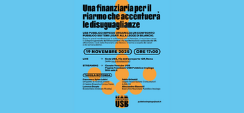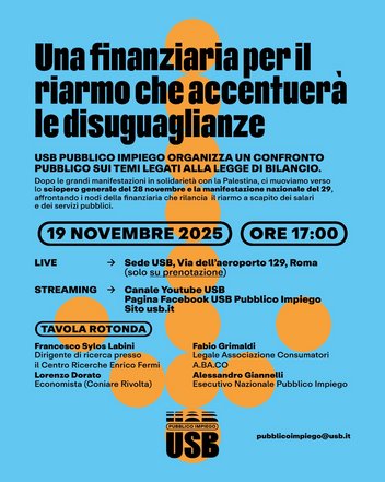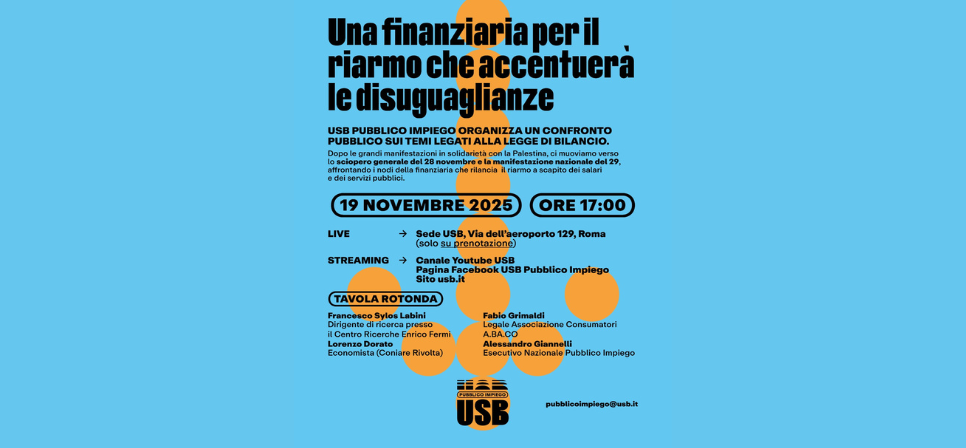 In vista dello sciopero generale del 28 novembre e della manifestazione nazionale del 29 a Roma: Usb Pubblico Impiego promuove un confronto pubblico, per entrare nel merito degli effetti del riarmo e della legge di bilancio sul mondo del lavoro, con particolare riferimento alle condizioni delle lavoratrici e dei lavoratori pubblici.