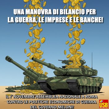 E' questa la sintesi di una manovra finanziaria (verrebbe da dire una manovra militare..) che certifica e cristallizza lo scivolamento verso il basso delle condizioni economiche di milioni e milioni di lavoratori e lavoratrici, stretti nella morsa tra i vincoli europei e l'adesione al sistema della guerra.