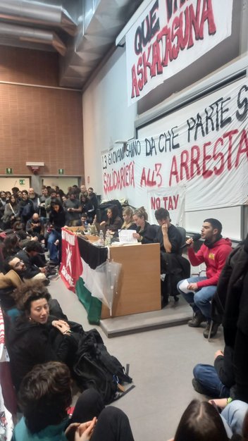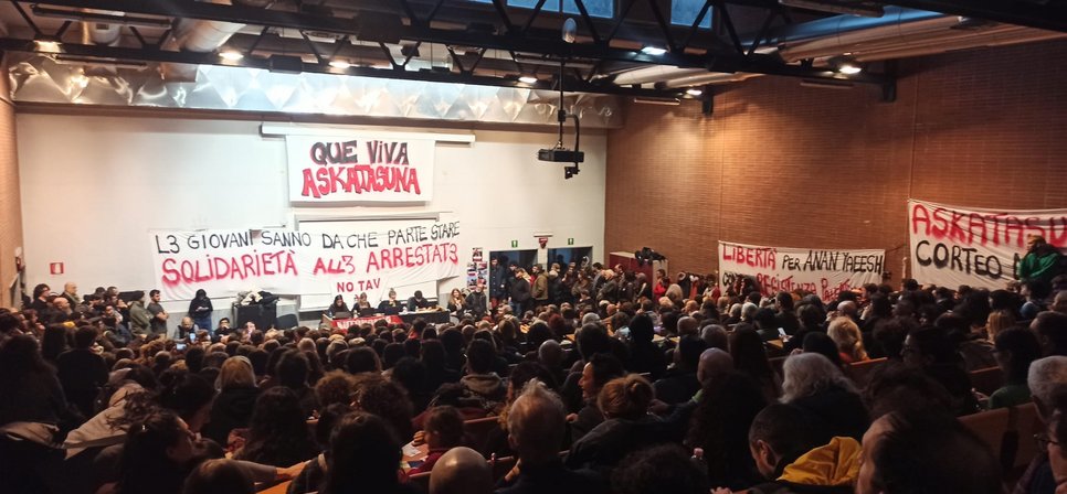 Abbiamo ribadito la nostra solidarietà e il nostro sostegno contro le politiche repressive generali e contro il comune di Torino e le sue ambiguità (ambiguità di tutto il centro Sinistra)inaccettabili sulla Palestina e sull'uso degli spazi sociali.