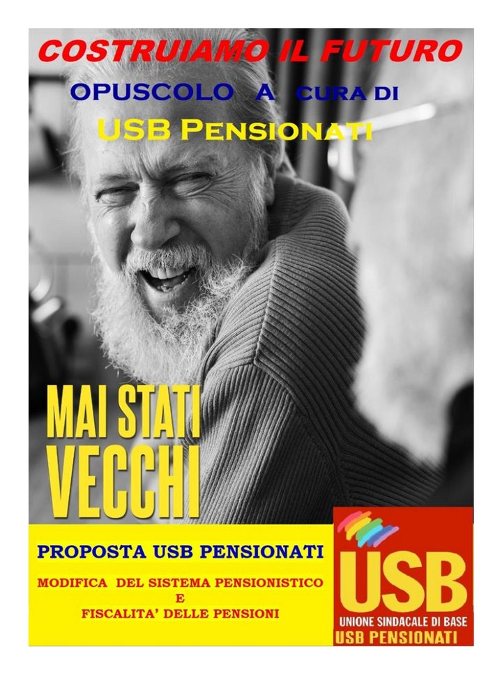 L’opuscolo è quindi uno strumento con il quale, senza la pretesa di esaurire la complessità della materia, USB Pensionati intende lanciare la campagna sul “contratto sociale dei pensionati” ed aprire un dibattito sulla condizione dell’anziano, sulle pensioni e sul sistema pensionistico, provando a formulare un racconto di classe diverso sulle prospettive e sulle necessarie azioni da intraprendere per garantire il pieno rispetto del dettato costituzionale, per ribaltare le imperanti logiche del mercato anche nello stato sociale.