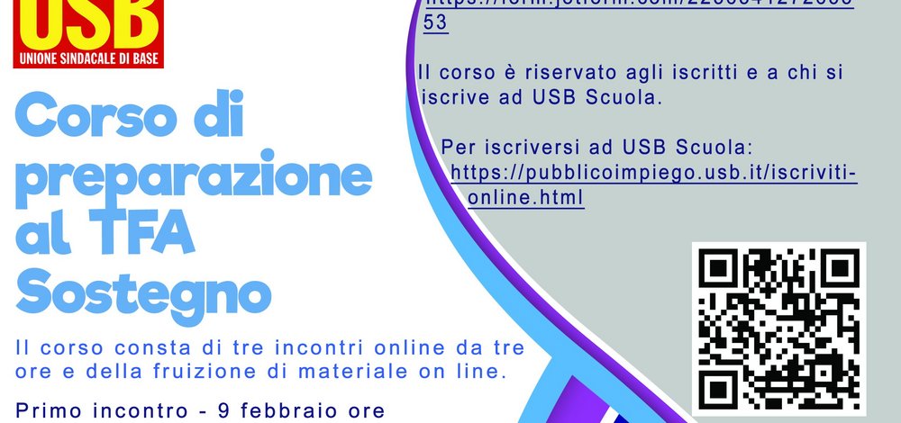 Il corso è gratuito e riservato a iscritti e a chi si iscrive a USB Scuola.