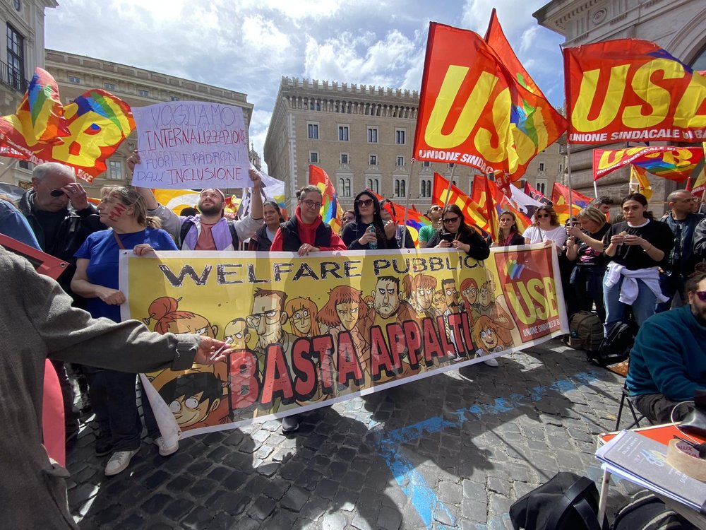 USB continuerà la propria lotta per diritti, salario e dignità nel settore degli appalti sociali e invita tutte le lavoratrici e tutti i lavoratori a partecipare alla giornata di sciopero del 18 maggio per l’internalizzazione dei servizi, per il rinnovo del contratto nazionale delle cooperative sociali, contro i part-time ciclici verticali e per l’introduzione di un ammortizzatore sociale che garantisca reddito nei periodi di sospensione estiva del servizio. Una mobilitazione necessaria anche per contrastare le politiche di guerra che continuano a sottrarre risorse alla spesa sociale.