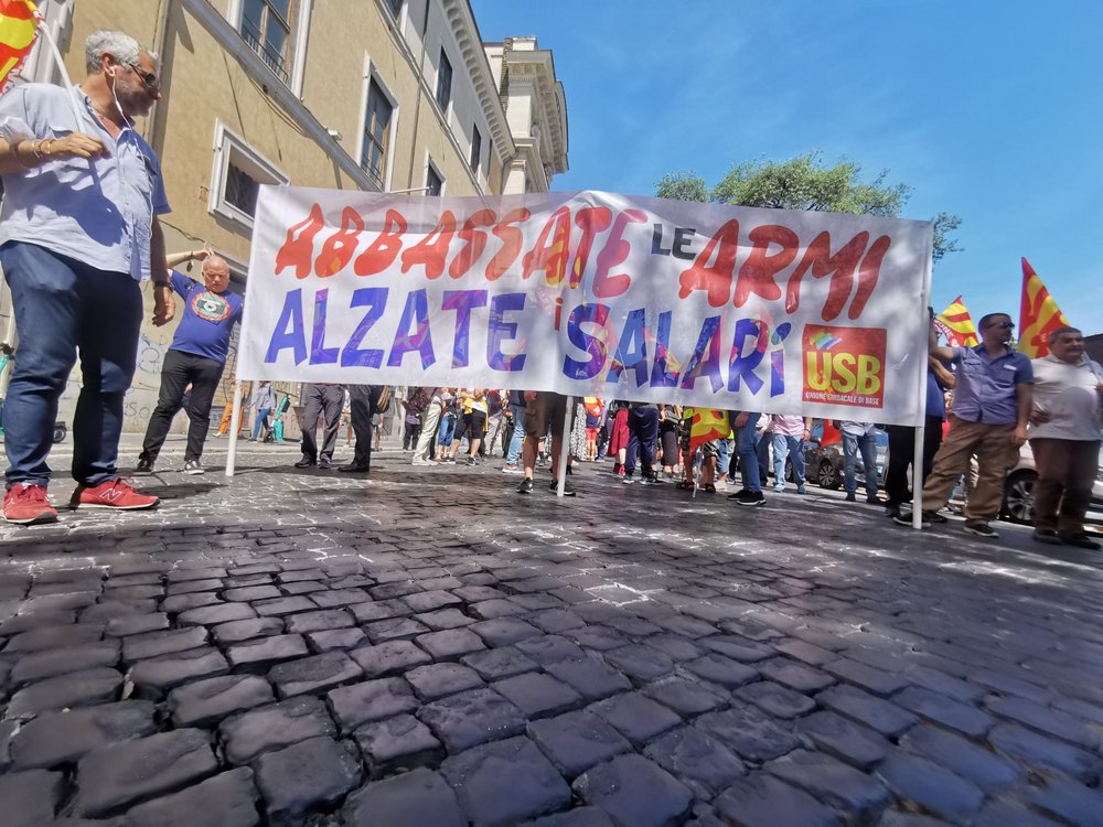 Contro l’invio delle armi in Ucraina e l’aumento delle spese militari; per l’aumento delle spese sociali e dei salari il ripristino della scala mobile, e un reddito di base per tutte e tutti, per il cessate il fuoco.