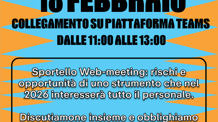SPORTELLO WEB MEETING Assemblea della USB mercoledì 18 febbraio ore 11 su teams Discutiamo assieme dell'introduzione dello sportello telematico,…